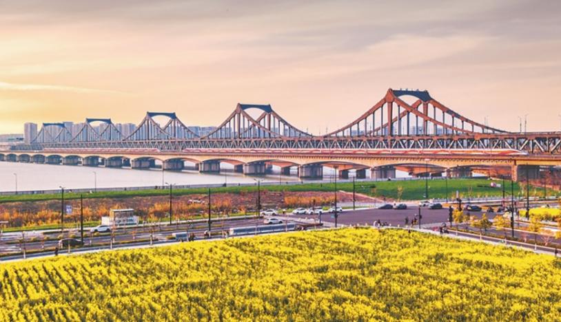 On March 7, two Fuxing EMU trains were running across the Pengbu Bridge in Hangzhou, complementing the sea of flowers along the Qiantang River and forming a picturesque moving scene.