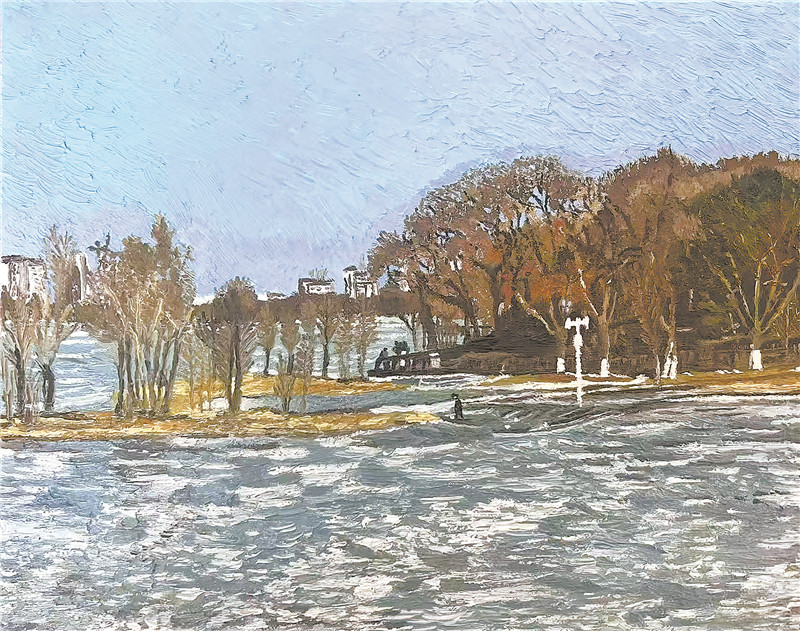 梁晨油畫作品:冬林映雪