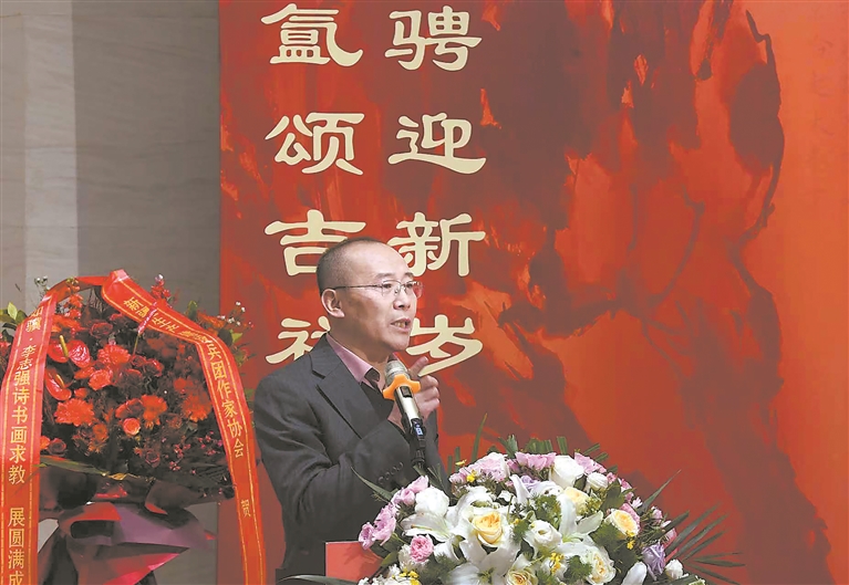 開幕式上,第十二屆全國政協(xié)常委、中央文史研究館館員、中國書法家協(xié)會名譽主席蘇士澍,中國作家協(xié)會原副主席高洪波,中國文聯(lián)原副主席、中國文藝評論家協(xié)會第二屆主席夏潮,《詩刊》主編李少君,中國鐵路文聯(lián)秘書長王濱,中國藝術(shù)研究院訪學導師、教授汪為勝等先后致辭。助展藝術(shù)家安康市文聯(lián)副主席李小洛、青年藝術(shù)家李薇揚發(fā)言。