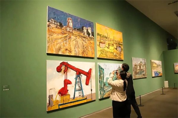 邁進(jìn)展廳,現(xiàn)場以灰綠色、赭石色為基調(diào)……