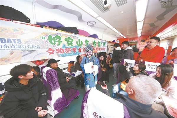 “火車車廂成為文物展示的新載體,讓文物真正的‘動’起來、‘活’起來?!敝袊糜螀f(xié)會副會長、山東省旅游行業(yè)協(xié)會會長王德剛表示,文物研學(xué)主題旅游列車為廣大游客提供了一種全新的旅游體驗方式,是全國交文旅深度融合和區(qū)域旅游合作模式的全新探索實踐,具有示范意義。