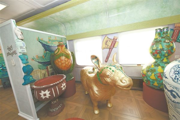 車廂內(nèi)展示的錯金銀鑲嵌銅犧尊,是戰(zhàn)國時期的青銅酒器,被大家稱為“戰(zhàn)國潮?!?。
