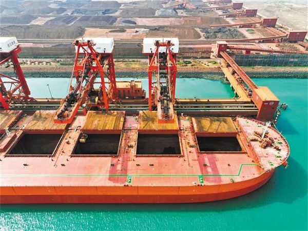 3月29日,江蘇省連云港新蘇港碼頭,貨輪在卸運(yùn)進(jìn)口鐵礦石。王 春攝(中經(jīng)視覺)