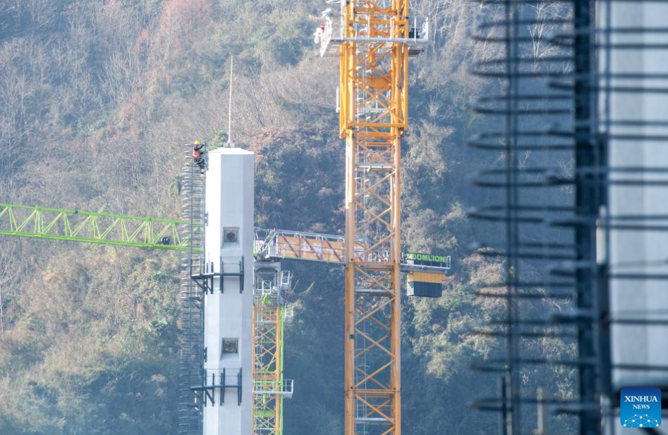 新華社外文通電:Renhe grand bridge along Xi'an-Chongqing high-speed railway in SW China under construction-Xinhua
