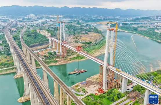 3月31日,由中鐵大橋局承建的成渝中線高鐵井口嘉陵江特大橋順利合龍,標(biāo)志著成渝中線高鐵全線橋梁全部合龍。新華社記者唐奕攝