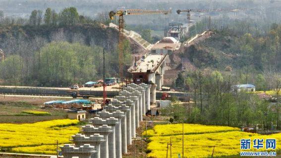 春日,中鐵十一局合武高鐵安徽段站前三標(biāo)各施工現(xiàn)場一派繁忙,施工人員利用春季有利天氣推進(jìn)建設(shè)(3月29日攝)。新華社記者周牧攝