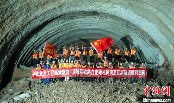 中新網(wǎng)富順10月4日電 (記者 劉忠俊)10月4日,四川自貢至宜賓高鐵控制性工程、全線(xiàn)唯一高瓦斯隧道杉樹(shù)灣隧道貫通,隧道貫通為全線(xiàn)建成通車(chē)奠定了堅(jiān)實(shí)基礎(chǔ)。