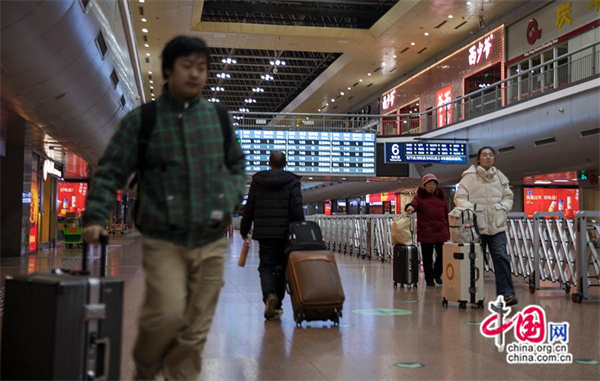 北京西站候車大廳內乘客人來人往。中國網記者 馬曠/攝