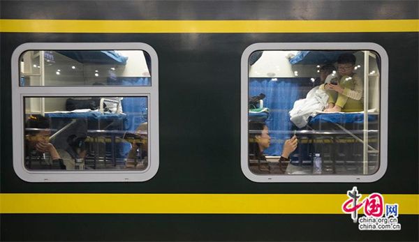 登上K4159次列車的旅客。中國網記者 馬曠/攝