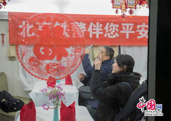 K4159次列車的餐車布置年味十足,引得旅客拍照打卡。中國網記者 馬曠/攝