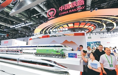 中國國際現(xiàn)代化鐵路技術(shù)裝備展覽會集中展示世界各國先進(jìn)鐵路技術(shù)和裝備。圖為觀眾在展覽會上參觀。新華社記者 邢廣利攝