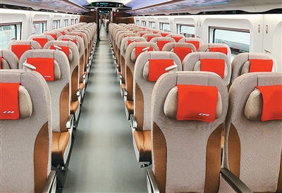 CR450動(dòng)車組車廂。本報(bào)記者 嚴(yán) 冰攝
