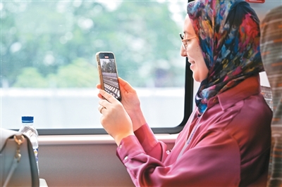 走進(jìn)試乘的CR400BF-GS復(fù)興號(hào)智能提升動(dòng)車組列車,26攝氏度,溫度宜人,窗外漸次閃過(guò)50余種不同類型的線橋隧試驗(yàn)場(chǎng)景。整個(gè)體驗(yàn)之旅,線路不長(zhǎng),風(fēng)景不少,新鮮感十足。30分鐘的試乘時(shí)間里,高鐵列車急速駛過(guò)中國(guó)鐵道博物館(東郊展館)、北京朝陽(yáng)動(dòng)車運(yùn)用所,穿行隧道、滑入彎道,在直線行駛時(shí)不斷加速,乘坐平穩(wěn)舒適,車廂內(nèi)中外嘉賓一起感受到了中國(guó)高鐵的先進(jìn)技術(shù)和卓越性能,車廂外,沿途的參觀者們紛紛拿起手機(jī)拍照記錄?!斑@就是中國(guó)高鐵,創(chuàng)新、高效、便捷!”在現(xiàn)場(chǎng)參與體驗(yàn)的英國(guó)博主亞當(dāng)(Adam)感嘆。