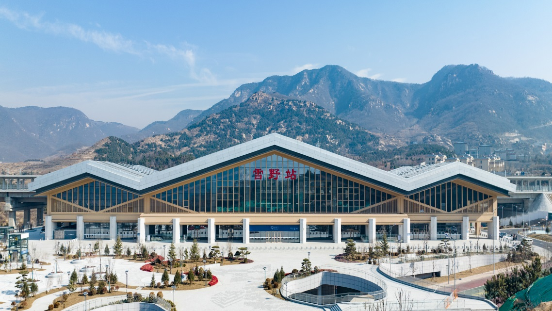 雪野站位于濟(jì)南市萊蕪區(qū)雪野鎮(zhèn),緊靠雪野湖旅游區(qū),隸屬中國(guó)鐵路濟(jì)南局集團(tuán)有限公司,于2022年12月開(kāi)通運(yùn)營(yíng)。站房總面積9988平方米,候車面積4800平方米。實(shí)行“驗(yàn)檢合一、售服合一、進(jìn)出合一”客運(yùn)組織模式。站房主體建筑地上一層,地下一層。站房在設(shè)計(jì)上采用“日月星漢、山水雪野”的設(shè)計(jì)理念,青山掩映,綠水浮影,層層山巒倒映進(jìn)波光粼粼的湖面,設(shè)計(jì)方案結(jié)合站房的功能屬性與雪野片區(qū)地域特色,將站房的形態(tài)抽象為“山”字的符號(hào),波動(dòng)的屋面形成韻律感,與山巒疊嶂的自然背景巧妙地結(jié)合在一體,猶如一幅山水畫(huà)卷,彰顯雪野的仙境神韻。